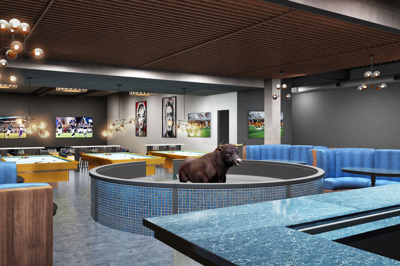 Bull and Bowl is a new bar and bistro opening on September 30, 2019, in downtown Austin, Tx. The location will feature a form of duckpin bowling alongside billiards and a mechanical bull. According to an article in Eater Austin, they plan two locations for the venture.